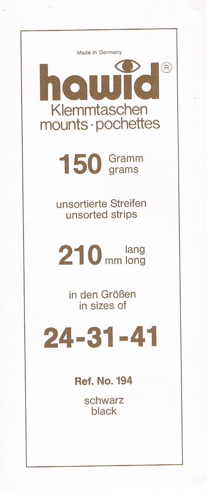 Klemlommer i striber som passer til frimærker med højden 24, 31 og 41 mm. Hver pakker er et mix af disse størrelser.