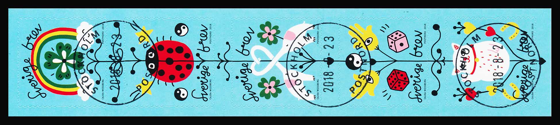 Sverige AFA 3206-3210 5-Stribe Stemplet